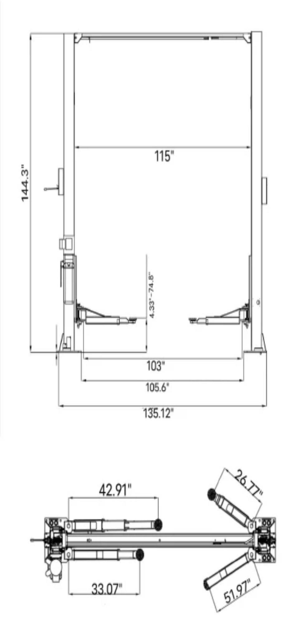 Locks engage as the lift rises and release when lowered, keeping arms properly positioned during operation.